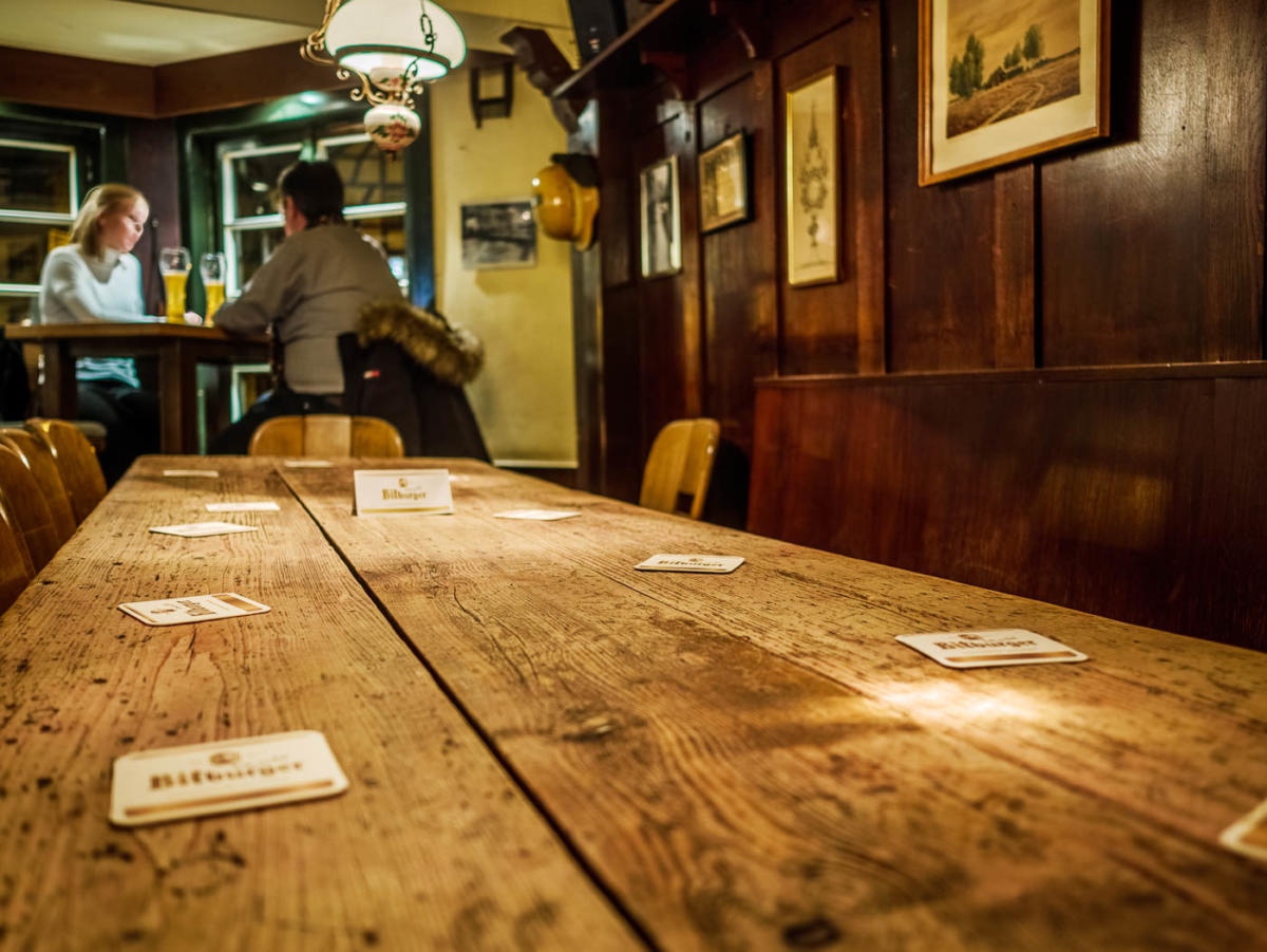 Wir bitten um rechtzeitige Tisch-Reservierung. So leer wie auf den unten gezeigten Fotos ist es im Haller nur einmal in der Woche – Dienstags an unserem Ruhetag.